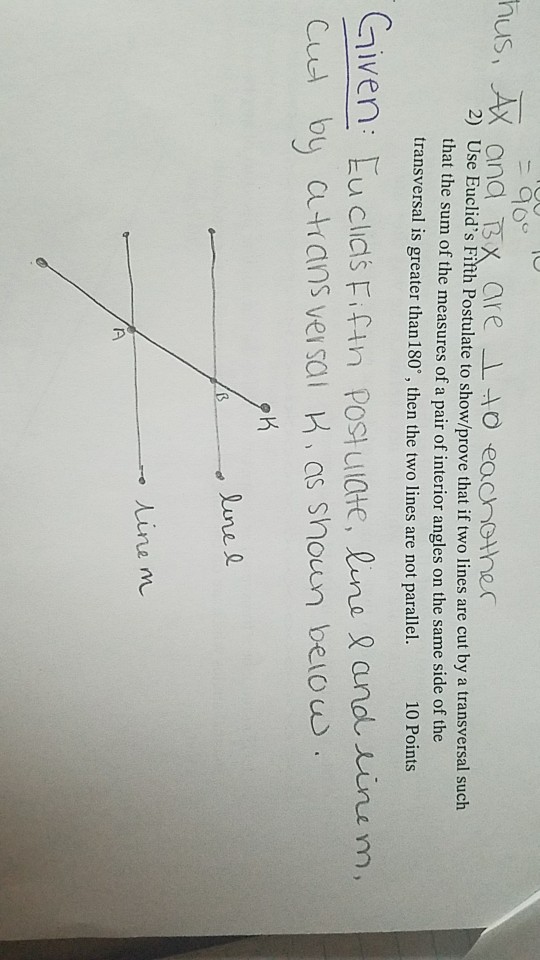 Solved 2 Use Euclid S Fith Postulate To Show Prove That Chegg Com