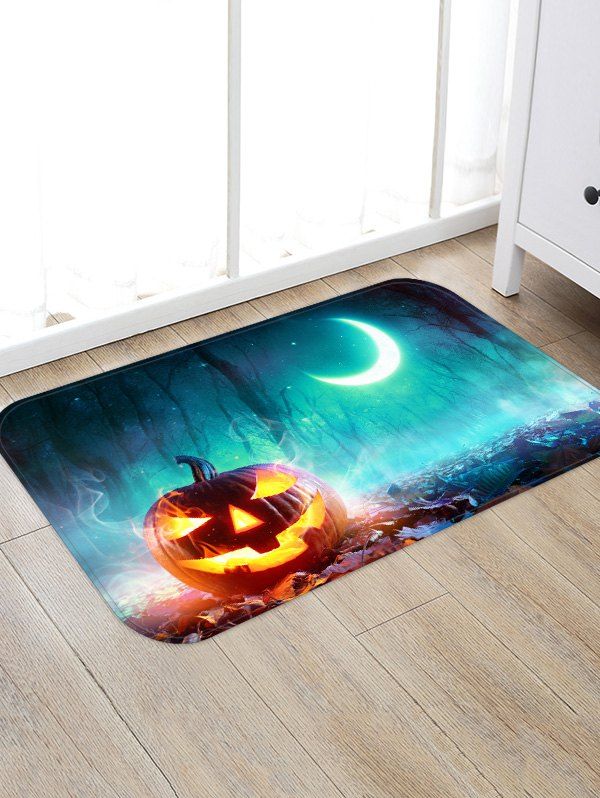 32 Off 2020 Halloween Moon Pumpkin Lamp Printed Floor Rug In Dodger Blue Dresslily