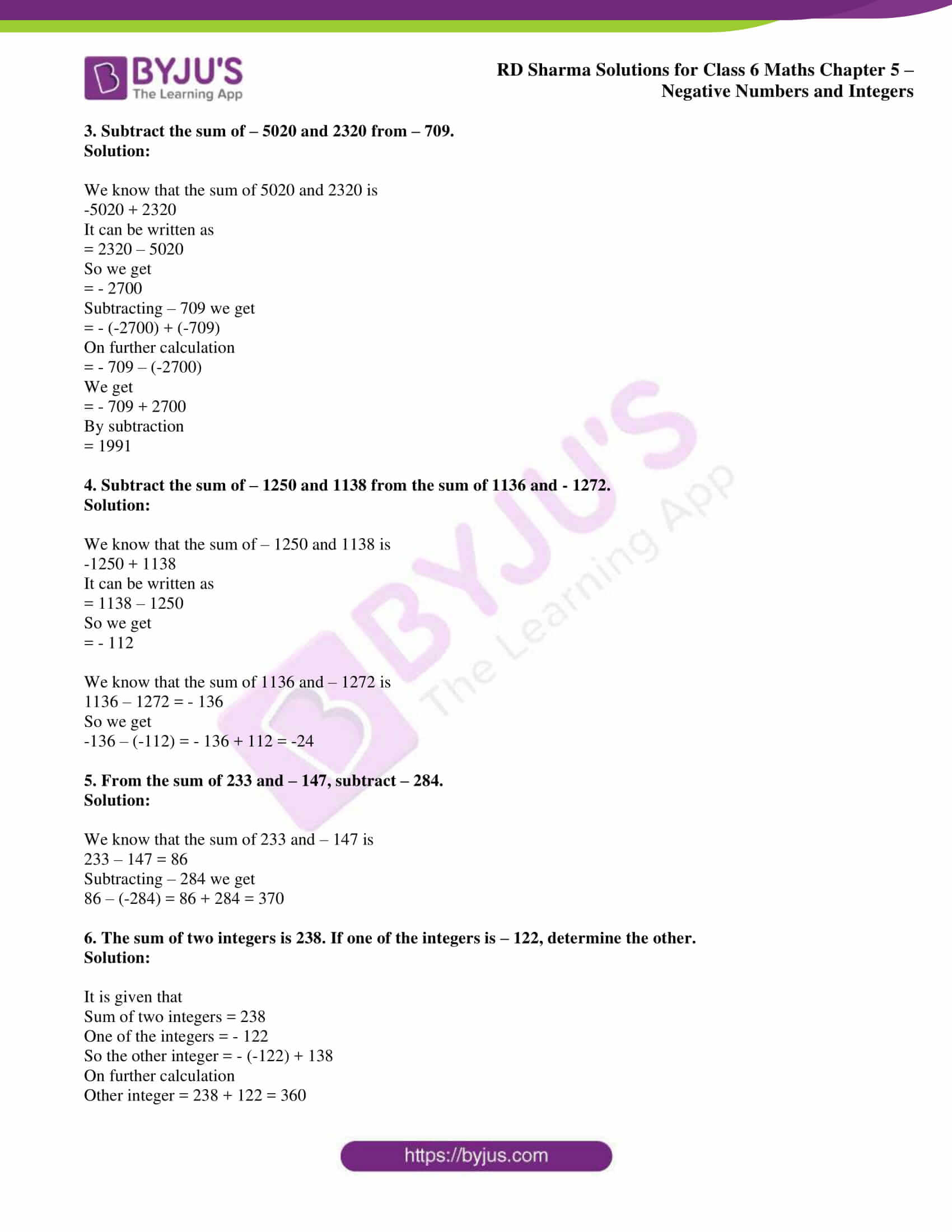 Rd Sharma Solutions For Class 6 Chapter 5 Negative Numbers And Integers Free Pdf