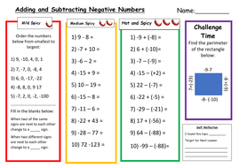 Adding And Subtracting Negative Numbers Differentiated Worksheet With Answers Teaching Resources