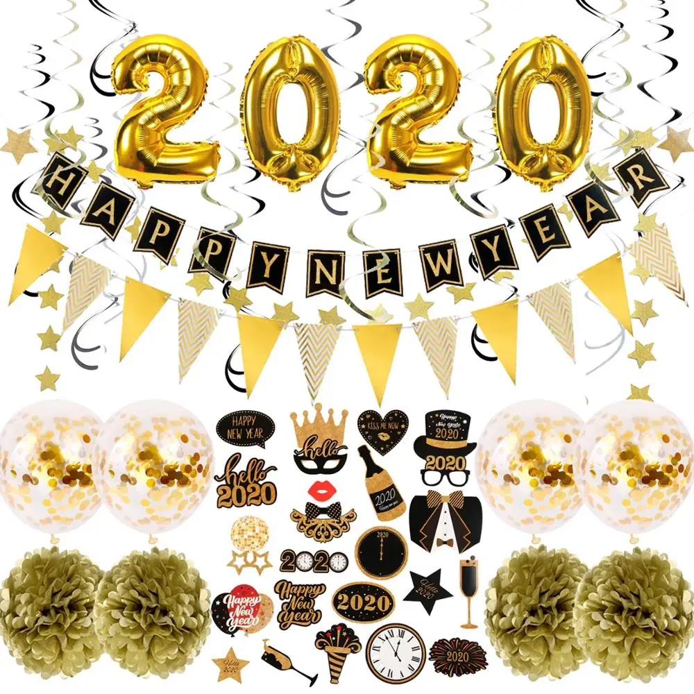 2020 Feliz Ano Nuevo Decoracion De Fiesta Negro Dorado Banner Navidad Adornos Para Foto Props Globo De Latex Para Decoracion De Navidad Nordica Decoraciones Diy De Fiestas Aliexpress