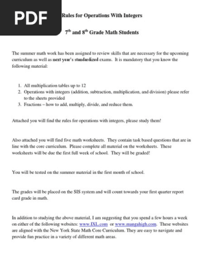 7th And 8th Grade Math Integer Rules Division Mathematics Multiplication
