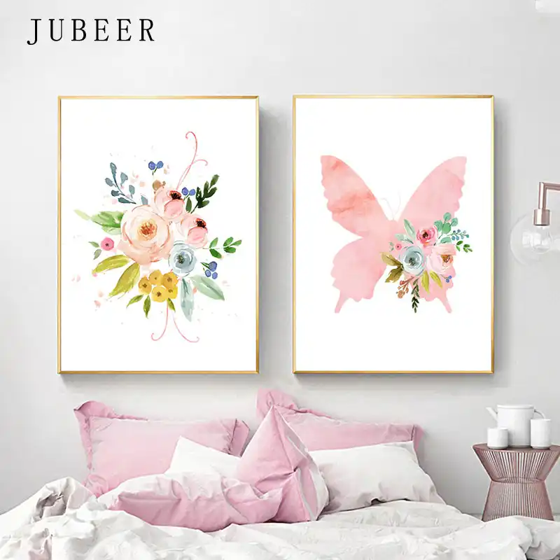 Watercolor Flower Canvas Painting Nursery Art Decor Girl Pink Heart Nursery Poster For Baby Room Kids Bedroom Decorative Picture Aliexpress