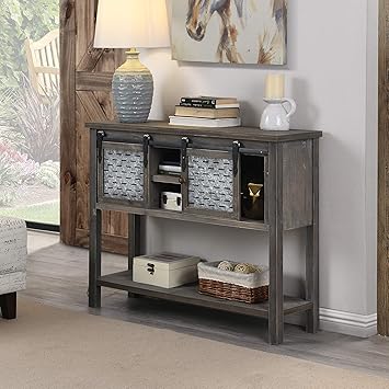 Nikki Grandy On Instagram Close Up Of The Gray Sliding Barn Door Console Table For Sale See Previous Post For Det Barn Door Console Home Projects Furniture