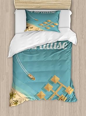 Amazon Com Lunarable Tropical Duvet Cover Set Hawaiian Bungalows With Palm Trees In Paradise Beach Birds Eye View Decorative 2 Piece Bedding Set With 1 Pillow Sham Twin Size Blue Grey And Sand