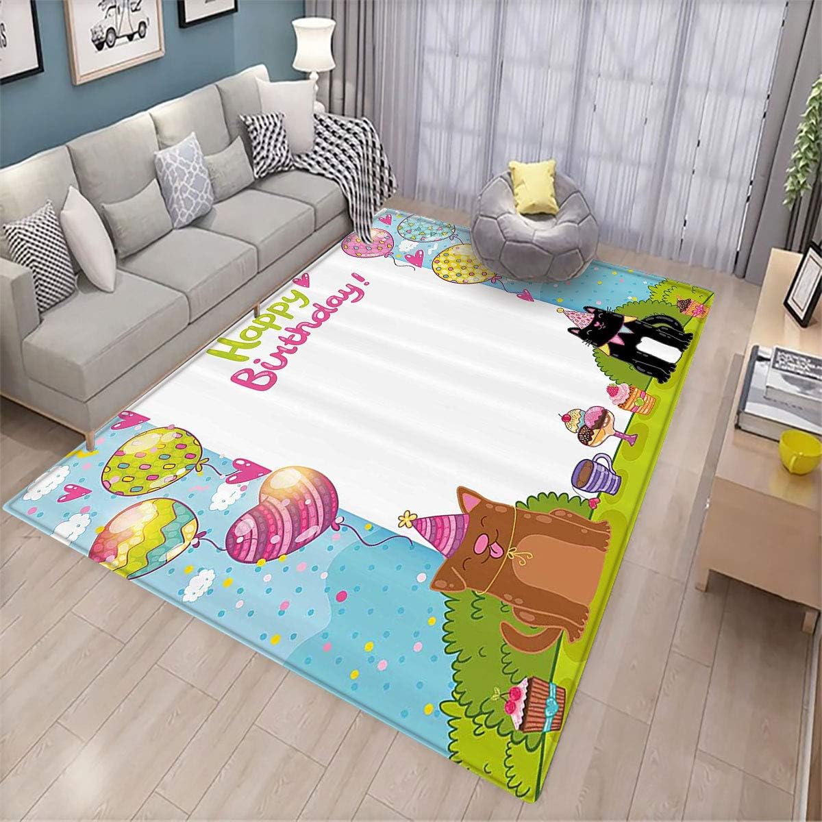 Amazon Com Birthday Decorations For Kids Home Custom Floor Mat Party Black And Brown Cats Cakes Balloons Heart Polka Dots 6 6 X10 Can Be Used For Floor Decoration Kitchen Dining