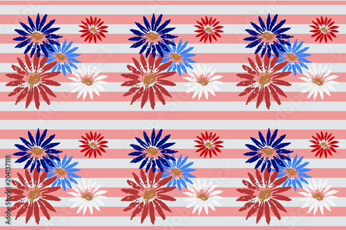 Floral Seamless Pattern Hand Drawn Colorful Flowers On Strips Background Textile Decorative Border Template For Wrapping Paper Wallpaper Web Banner Packaging Print Project Vectror Illustration Buy This Stock Vector And Explore