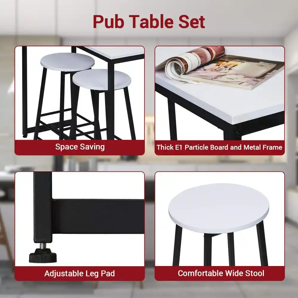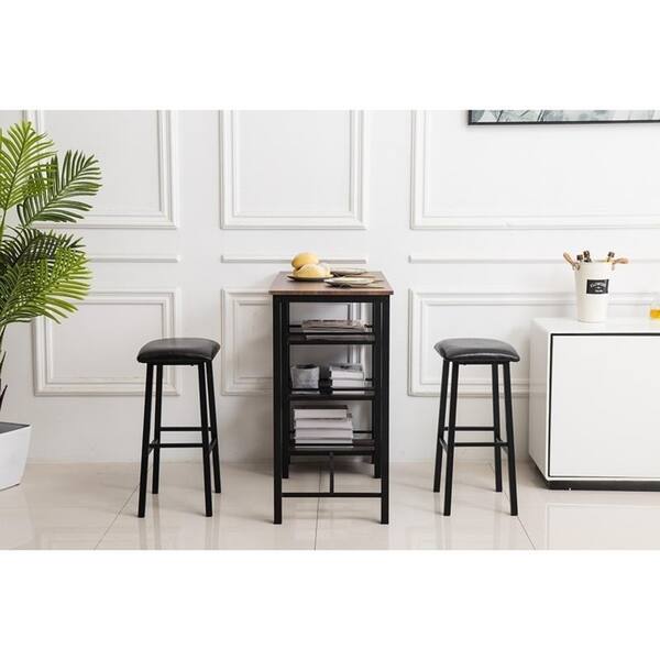 Shop Home Kitchen Breakfast Table 3 Piece Dining Set Bar Set With Soft Stool Three Layer Frame Overstock 29744372