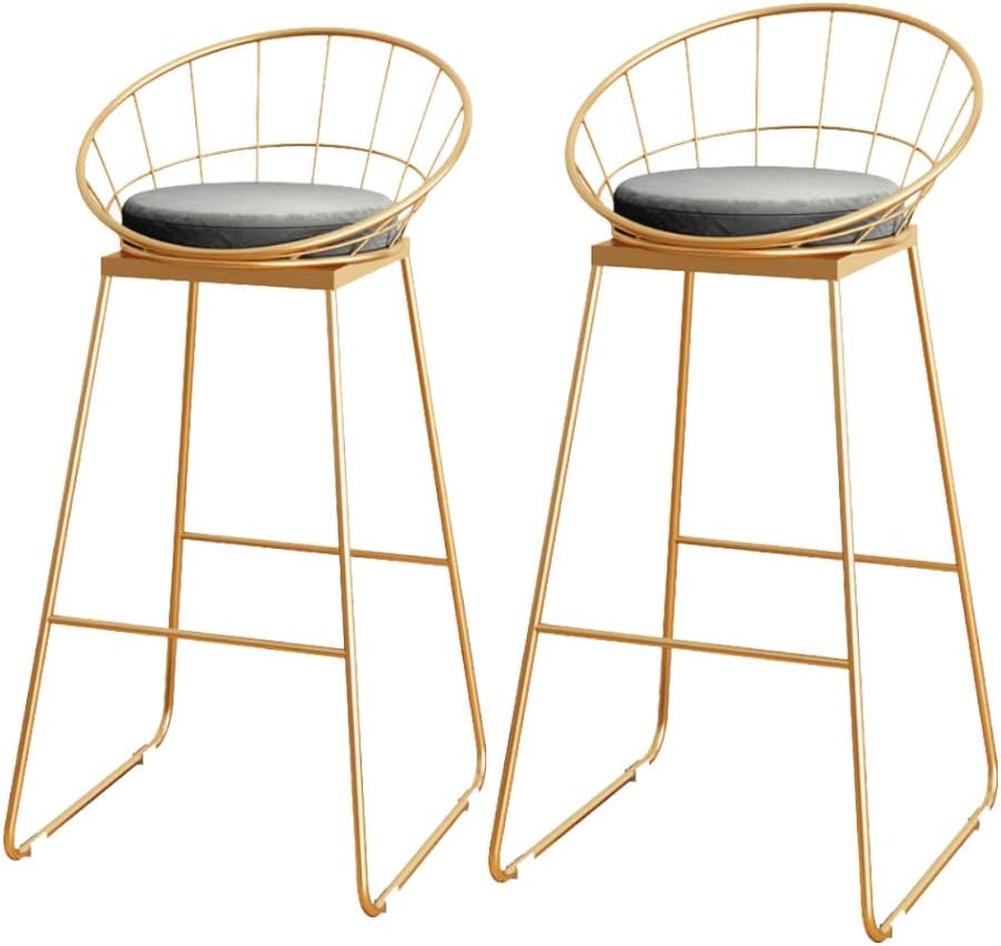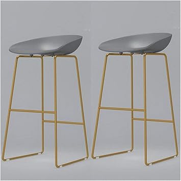 Amazon Com Qqxx Grey Bar Stools Set Of 2 Gold Chrome Footrest And Base New Quality Breakfast Bar Stool Office Kitchen Parties High Chair Size 75cm Kitchen Dining