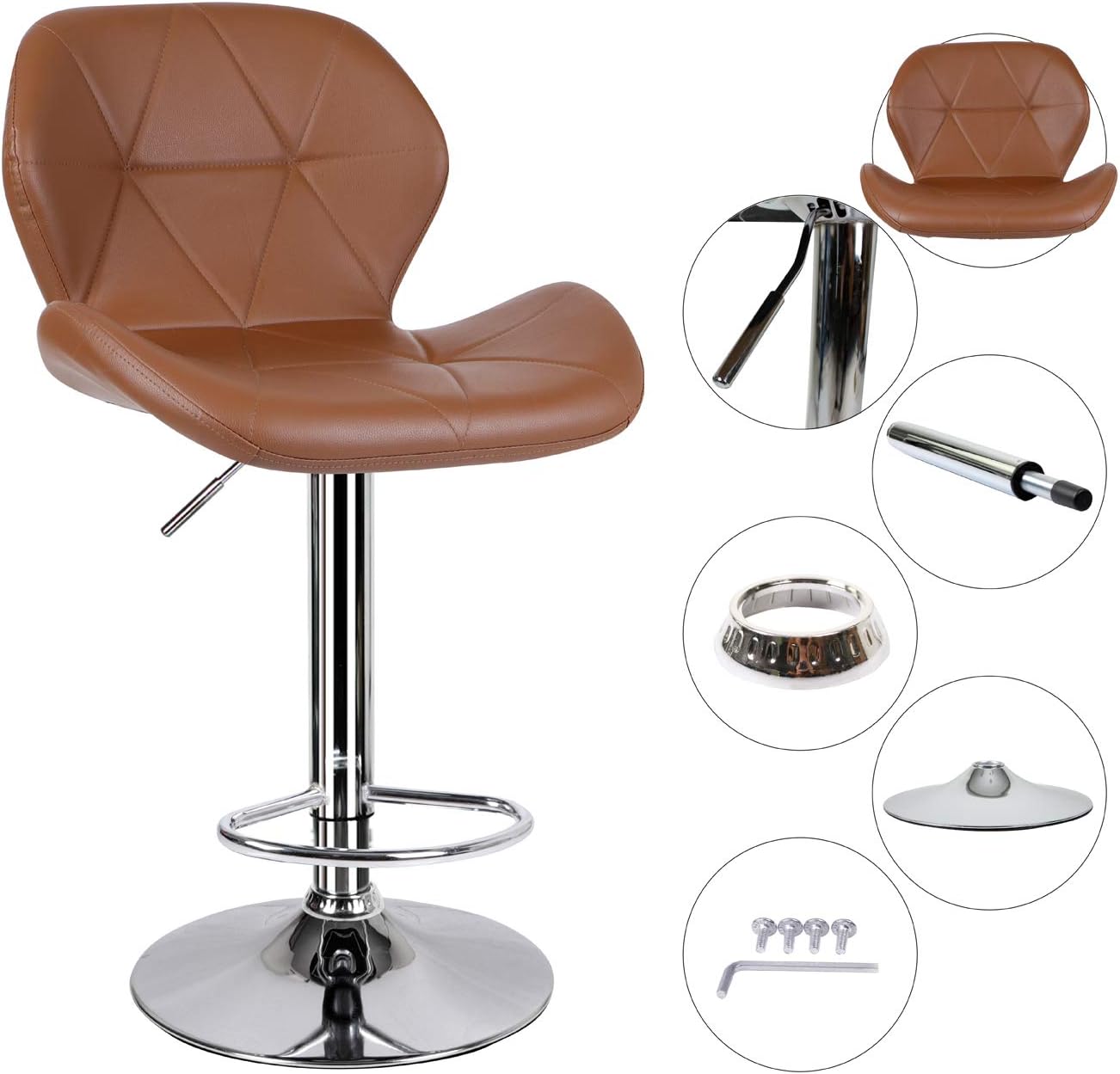 Grey Bar Stool Set Of 2 Breakfast Bar Stool With Padded Backrest Chrome Footrest Kitchen Bar Stool Swivel Gas Lift High Dining Stools Bar Chairs Breakfast Bar Counter Kitchen Home Furniture Barstools