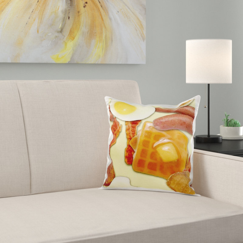 East Urban Home Breakfast Bacon Eggs Waffles Background Pillow Cover Wayfair