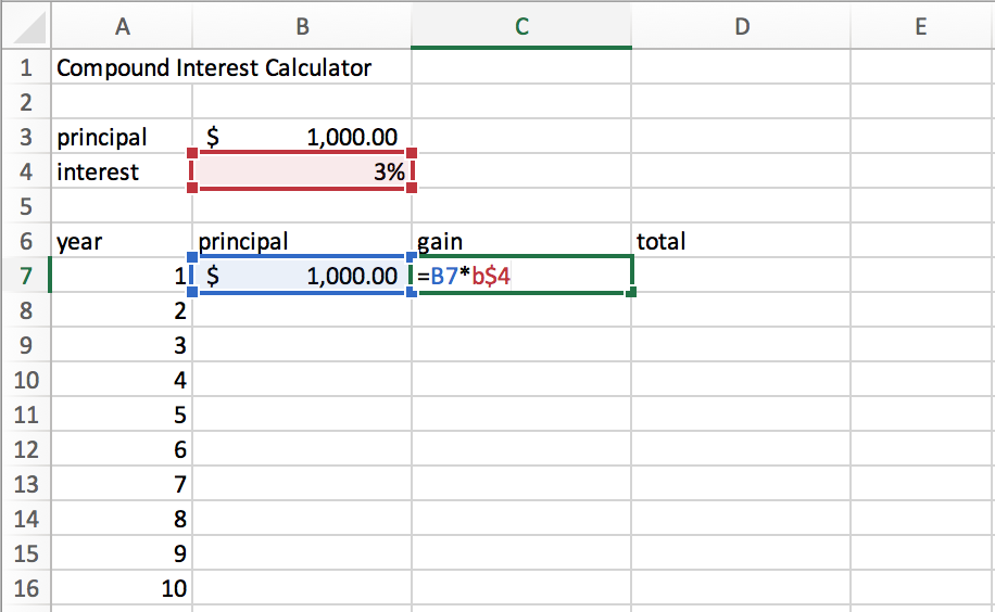 Microsoft Excel Lesson 2 Compound Interest Calculator Absolute Referencing Fill Down Youtube