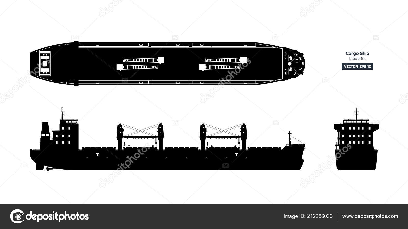 Black Silhouette Of Cargo Ship On White Background Top Side And Front View Of Tanker Container Boat Blueprint Stock Vector C Shain 212286036