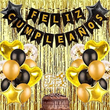 Amazon Com Decoraciones De Cumpleanos Para Hombres Suministros De Decoracion De Fiesta De Cumpleanos En Negro Y Dorado 57 Piezas Incluidas Pancartas De Feliz Cumpleanos Globos De Confeti Remolinos Colgantes Pompones Para Decoracion