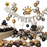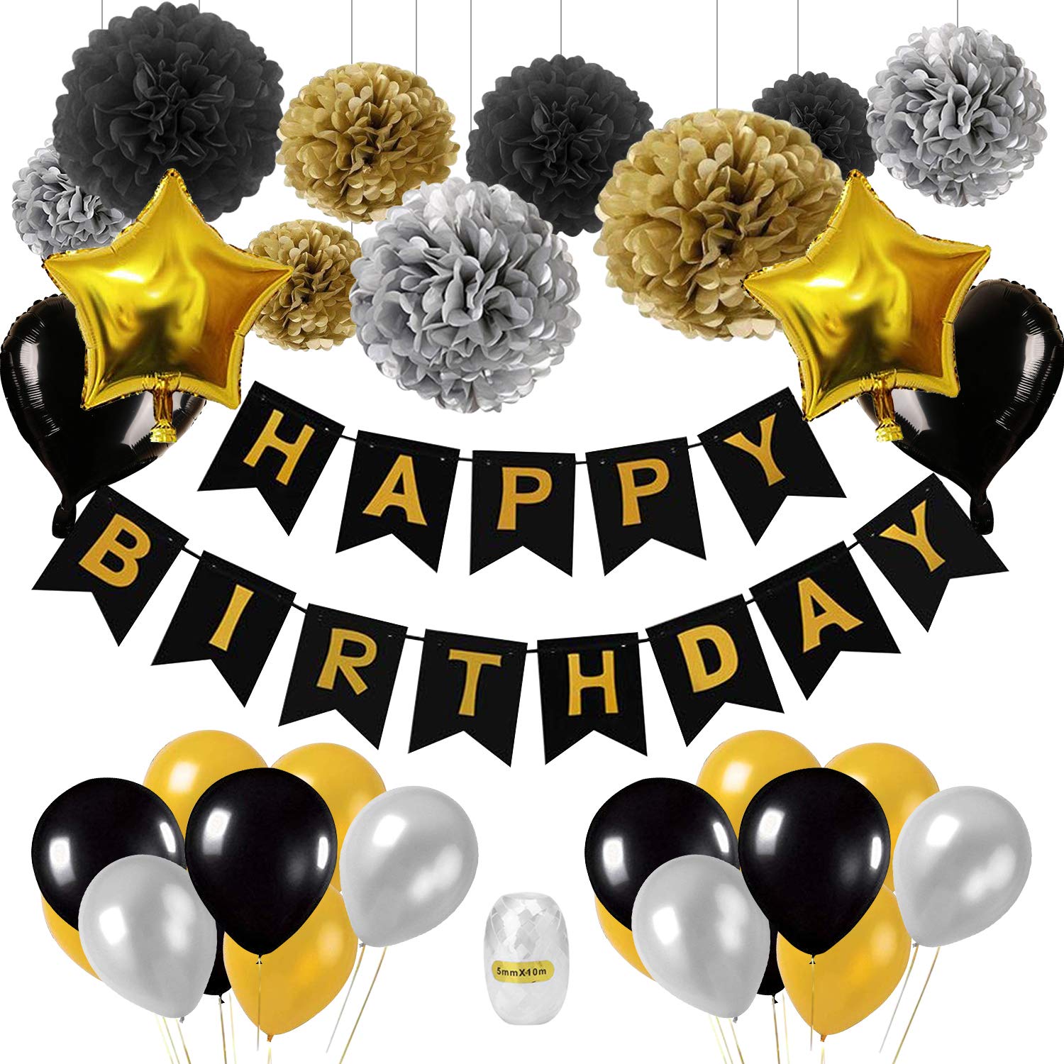 Amazon Com Decoracion De Fiesta Negra Y Dorada Con Pancarta De Feliz Cumpleanos Decoraciones De Fiesta De Cumpleanos Globos Negros Y Dorados Cortinas De Flecos Cubierta De Mesa Negra Y Dorada Y