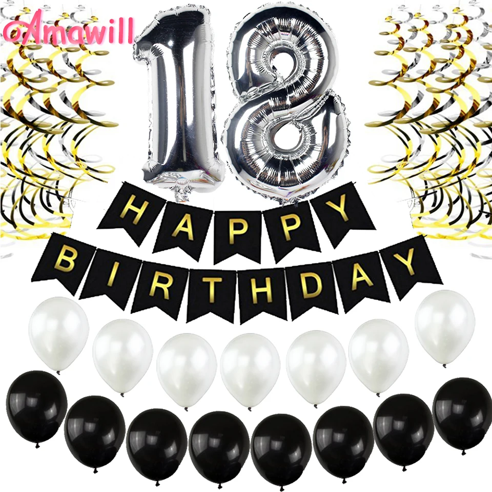 Blanco Y Negro Adecuado Para Ninos Y Ninas Decoracion Globos De Latex Dorado Sancuanyi 18 Age Globos Cumpleanos Happy Birthday Suministros Y Decoracion Globo Grande De Aluminio