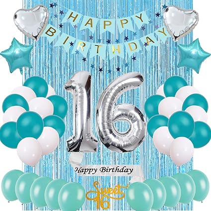 Amazon Com Decoracion Para Fiesta De 16 Cumpleanos 16 Globos De Fiesta Con Numeros Plateados Y Azules Numero 16 Globos De Feliz Cumpleanos 16 Decoraciones De Cumpleanos 16 Banderines De Feliz Cumpleanos 16