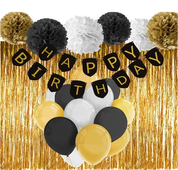 Banderin Negro Y Dorado De Feliz Cumpleanos Con Pompones De Papel Cortina Con Flecos Y Globos Para Decoraciones De Fiesta Buy Bandera De Feliz Cumpleanos Negra Y Dorada Globos Para Decoraciones De Fiesta Cortina