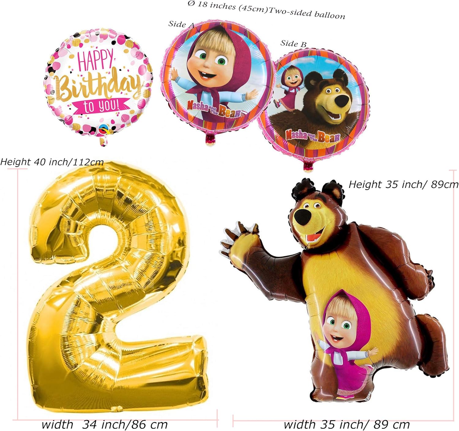 Masha Y El Oso Colorido Globos Set Para Cumpleanos 2 Anos Feliz Cumpleanos Decoracion Masha Y El Oso Amazon Es Juguetes Y Juegos