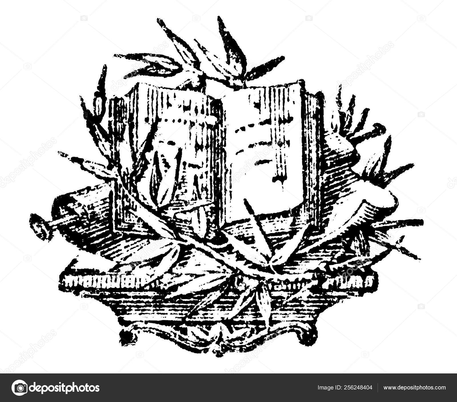 Vintage Vector Drawing Or Engraving Of Antique Decoration Design Of Book And Scrolls With Floral Ornament Around Stock Vector C Ursus Zdeneksasek Com 256248404