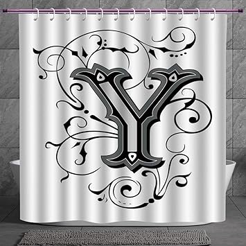 Unique Shower Curtain 2 0 Letter Y Calligraphy Inspired Medieval Capital Letter Alphabet Symbol European Design Decorative Black Grey White Machine Washable Shower Hooks Are Included Amazon In Home Kitchen