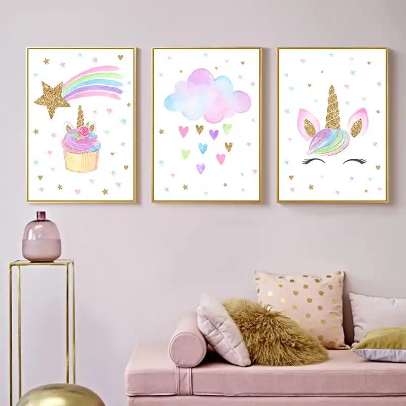 Rainbow Unicorn Wall Art Full Square Round Diamond 5d Diy Diamond Painting Baby Nursery Poster Cute Children Kids Bedroom Decor Aliexpress