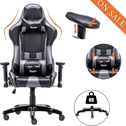 Hoya Dwell Racer Ergonomic Computer Gaming Chair E Sport Video Game Chairs Adjustable Seat Height And Multi Function Executive Office Chair With Bonded Pu Leather Lumbar Support Dark Grey Amazon Ca Maison Et Cuisine