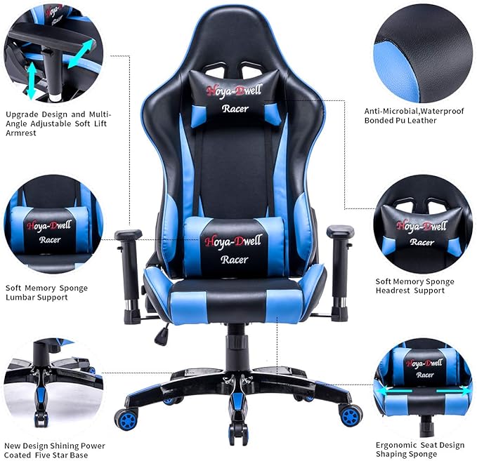 Amazon Com Hoya Dwell Gaming Chair Racing Office Chair High Back Computer Desk Chair Pu Leather Chair Executive And Ergonomic Adjustable Swivel Chair With Headrest And Lumbar Support Kitchen Dining