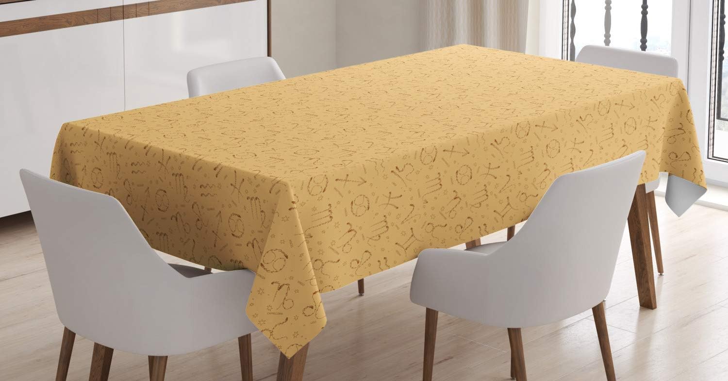 Amazon Com Lunarable Zodiac Tablecloth Simplistic Horoscope Drawings With Written Name And Outline Stars Rectangular Table Cover For Dining Room Kitchen Decor 60 X 84 Pastel Brown Cinnamon Home Kitchen