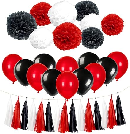 Kit De Decoracion De Fiesta Rojo Y Negro Pompones De Papel De Seda Borla De Papel De Seda Globos Para Cumpleanos Baby Shower Despedida De Soltera Festivales Carnavales Graduacion Amazon Es Hogar
