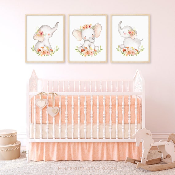 Boho Elephant Wall Art Print Nursery Baby Girl Room Floral Bohemian Wa Pink Forest Cafe