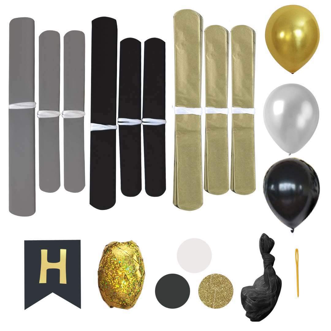 Decoraciones Cumpleanos Gdaya Decoraciones De Fiesta Con 1 Bandera Banderines Happy Birthday 2 Metros De Guirnalda 30 Globos 9 Pompones De Papel 10 Metros De Cinta Dorada Para Hombres Y Mujeres Negro Dorado Y Gris