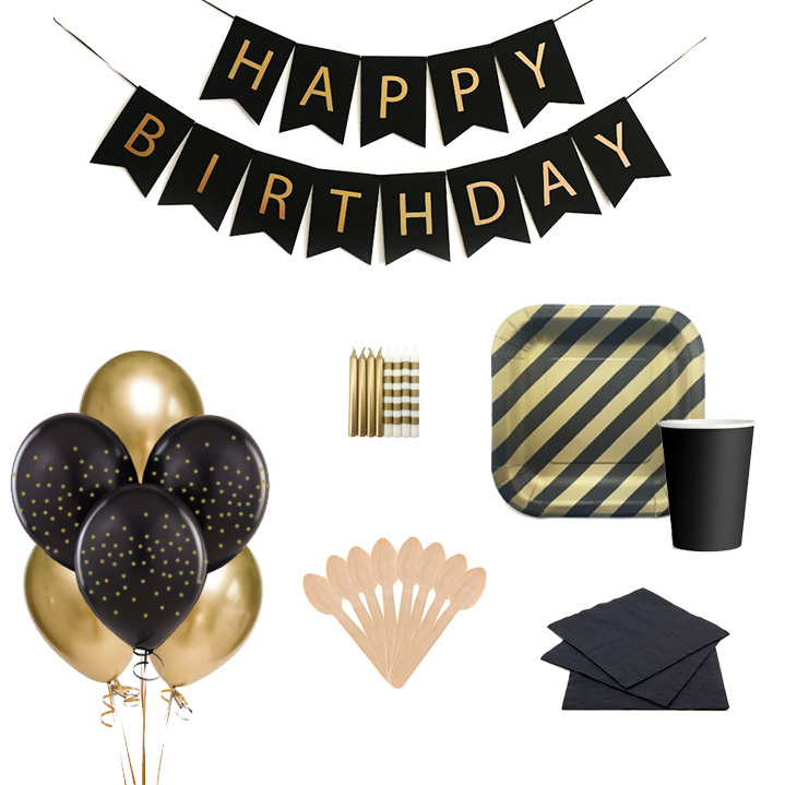 Kit De Fiesta Negro Y Dorado Ohlala Celebraciones