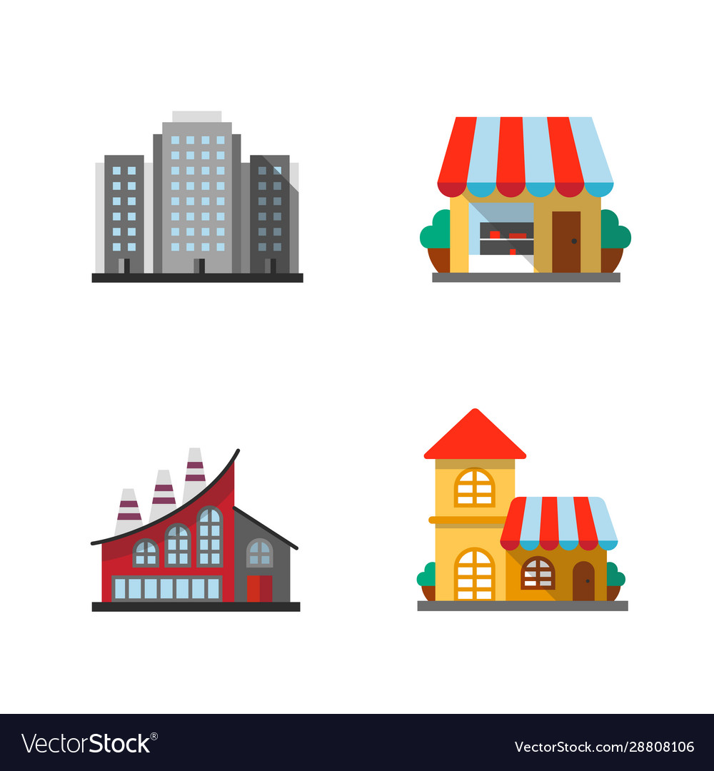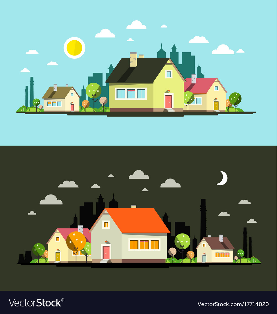 Flat Design City Houses Skyscrapers Stock Vector Colourbox
