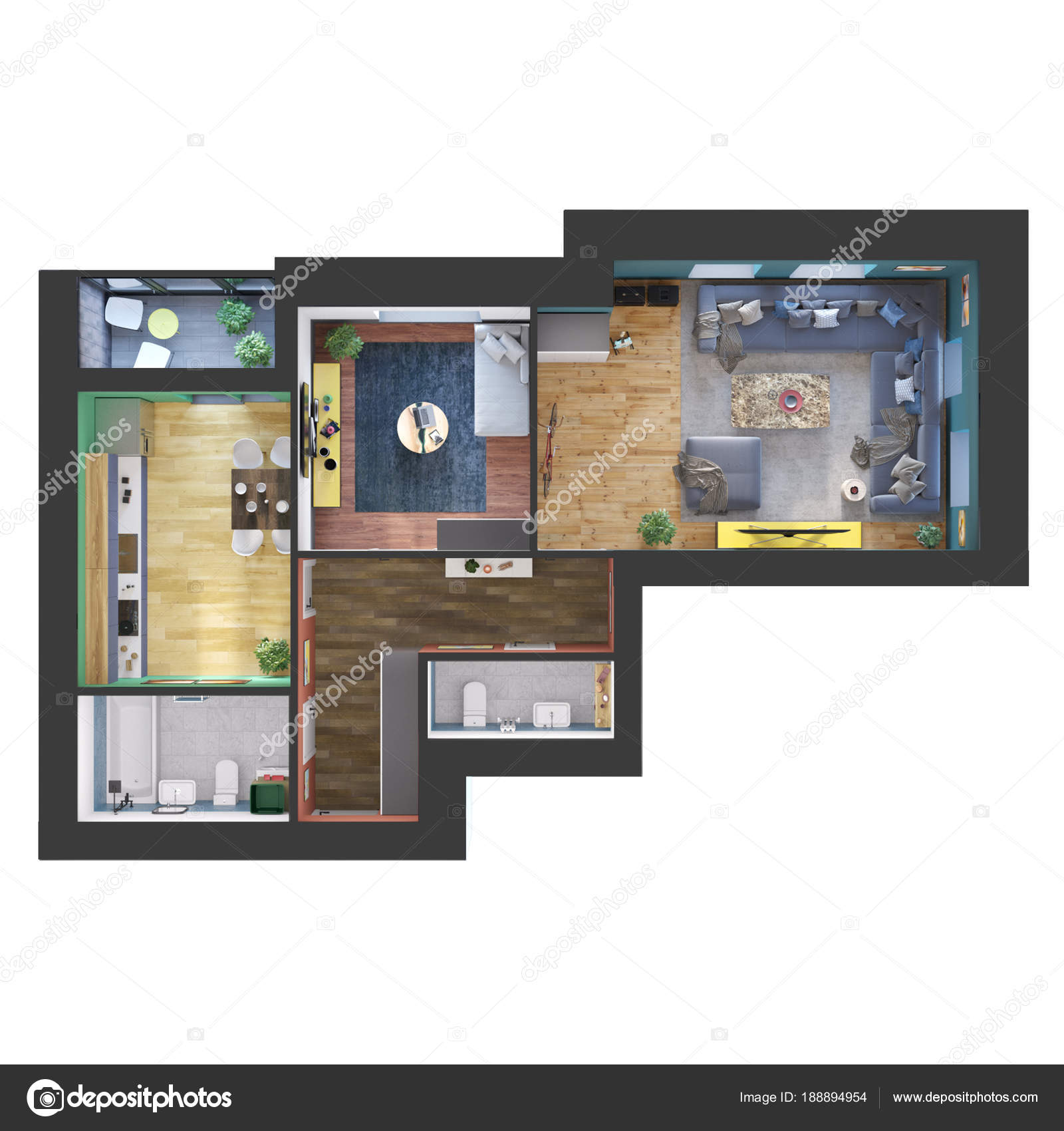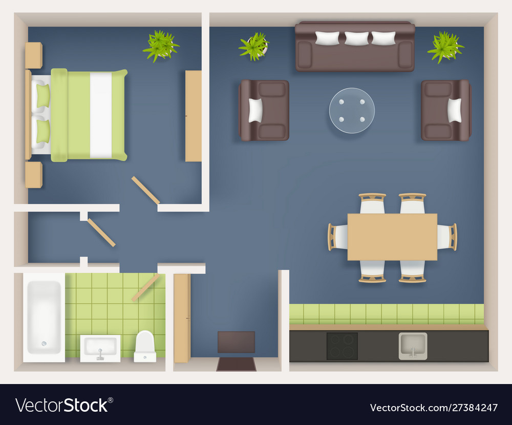 Sofa Armchair Pillows Carpet Coffee Table Pouf Plants Vector Illustration Furniture Set For Interior Design Scene Creator Top View Architectural Floor Plan Dark Sofas On Wood Parquet Buy This Stock Vector And