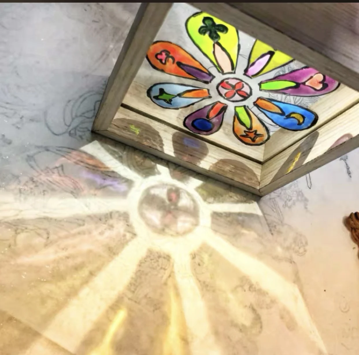 Wooden Frame Aluminium Foil Stained Glass Paints Flower Pattern Printed On A4 Size Paper White Liner Glas Stained Glass Paint Stained Glass Glass Painting