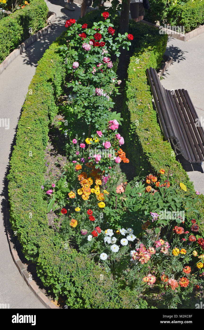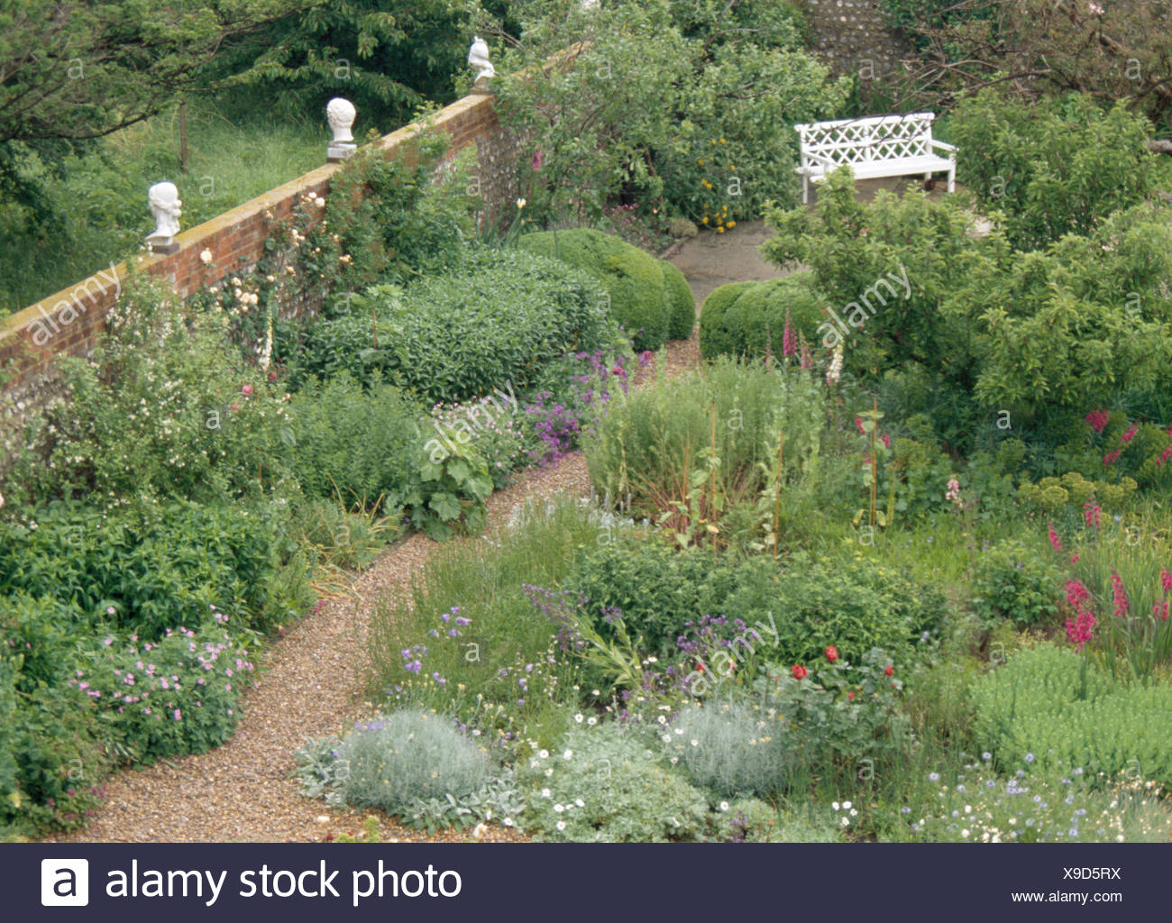 Decks Bird S Eye View Of Two Recliners With Striped Green Cushions Yellow Flowers And Napkins On Cener Table White Railings Lawn Flower Beds Stock Image U42329710 Fotosearch