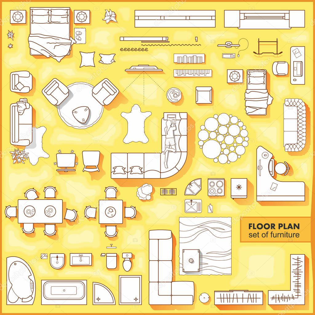 Set Of Linear Icons For Interior Top View Plans Stock Vector Illustration Of Icon Drawn 97235875