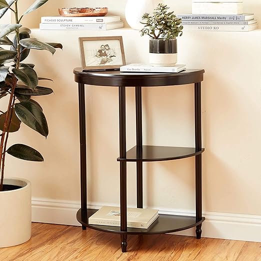 Amazon Com Half Circle Entryway Console Table Small Semi Round Table With 3 Open Shelves Half Moon Table For Hallway With Sleek Modern Unique Design Cherry Kitchen Dining
