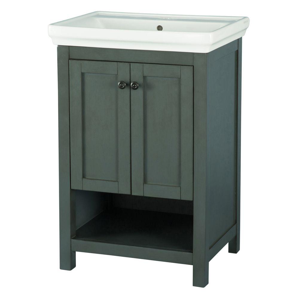 Home Decorators Collection Hanley 23 3 4 In W X 18 In D Bath Vanity In Charcoal Grey With Porcelain Vanity Top In White Hagos2417 The Home Depot