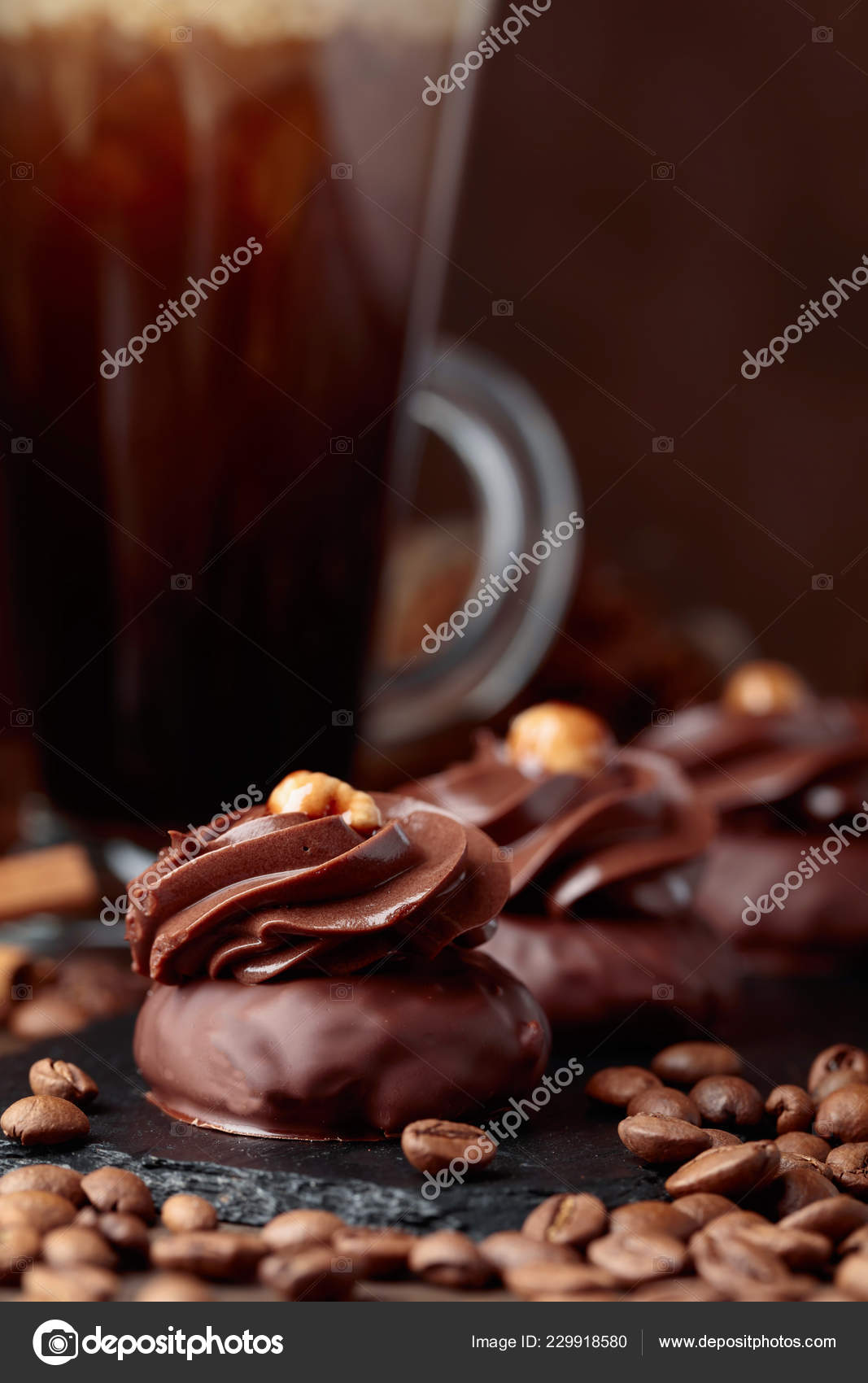 Chocolate Dessert Hazelnut Coffee Cream Wooden Table Coffee Beans Cinnamon Stock Photo C Igorr1 229918580