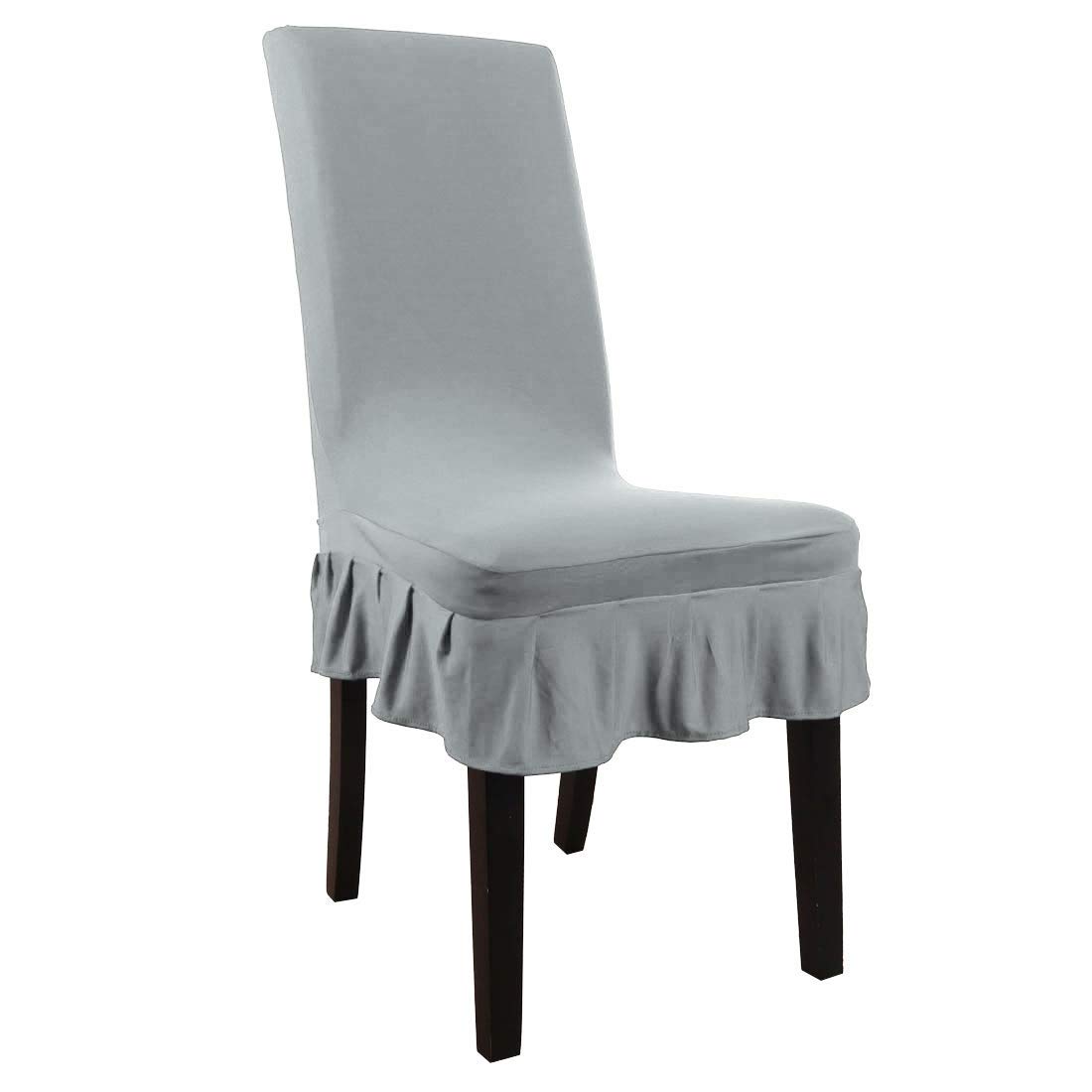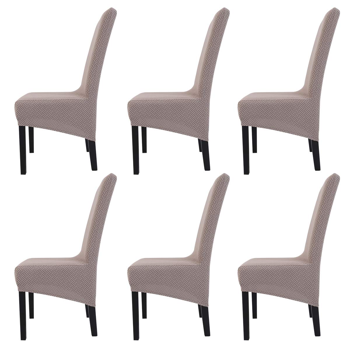 Amazon Com H Versailtex Super Fit Soft Spandex High Back Dining Chair Covers Set Of 2 Rich Textured Stretch Small Checks Knitted Jacquard Dining Room Chair Seat Slipcover Protector Shield Dove Furniture Decor