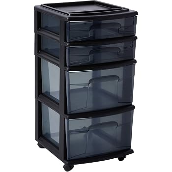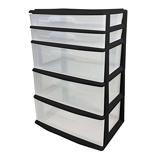 Amazon Com Homz Plastic 5 Drawer Medium Storage Tower Black Frame Clear Drawers Set Of 1 Home Kitchen