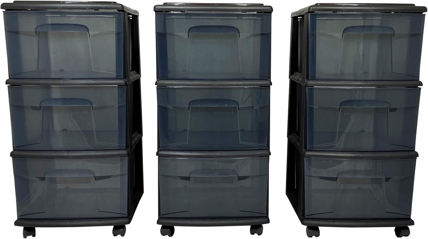 Amazon Com Homz 25 Inch Solid Plastic 3 Drawer Wheeled Home Storage Organizer Cart 3 Pack Home Kitchen