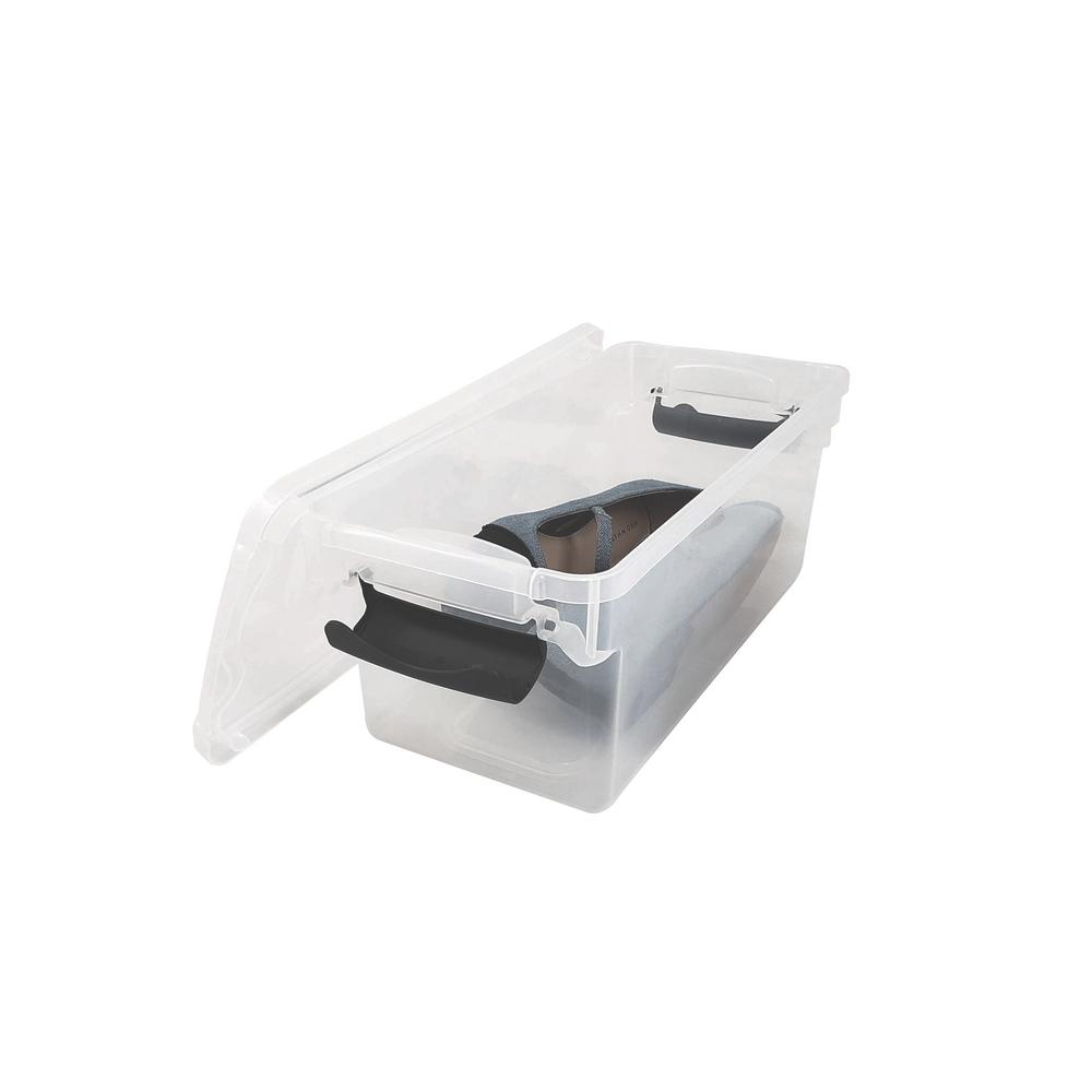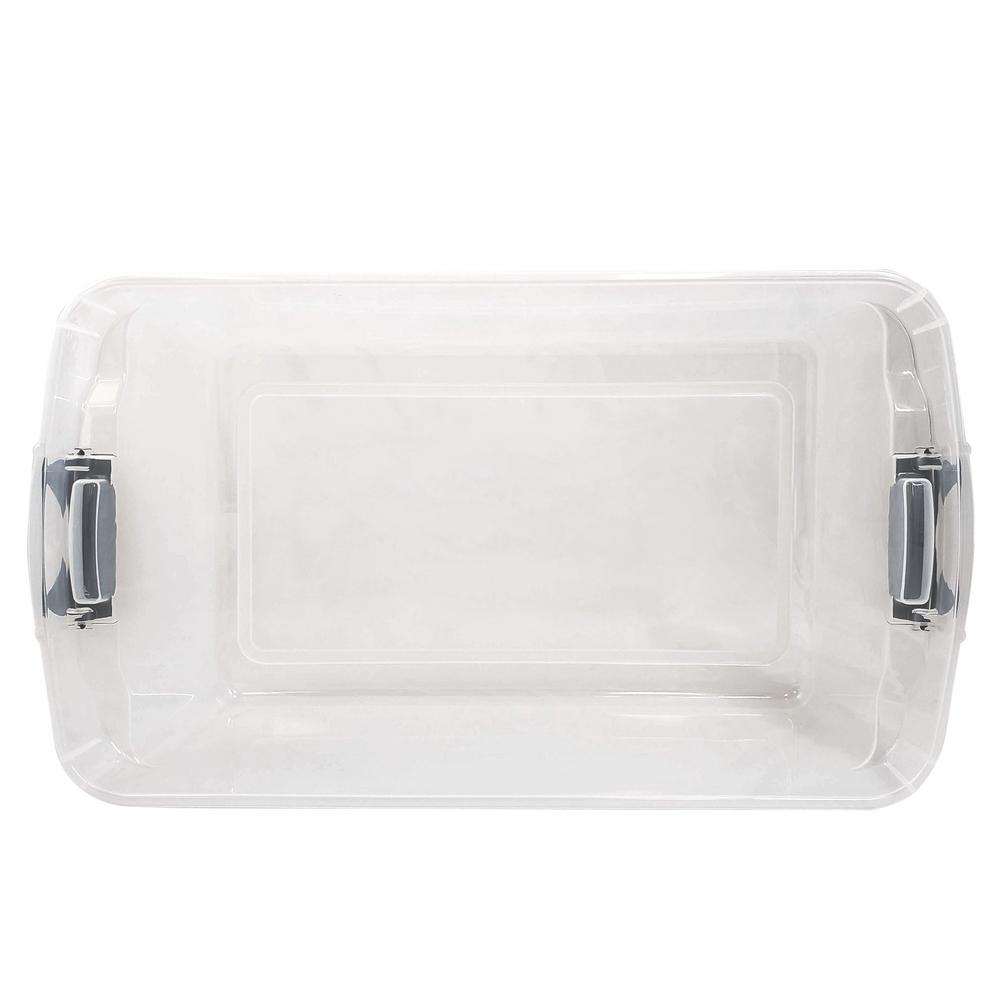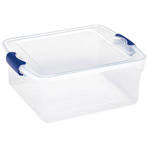Plastic Storage Modular Stackable Storage Bins With Blue Latching Handles 15 5 Quart Clear 4 Pack 15 5 Quart Capacity Ideal For Storing By Homz Walmart Com Walmart Com