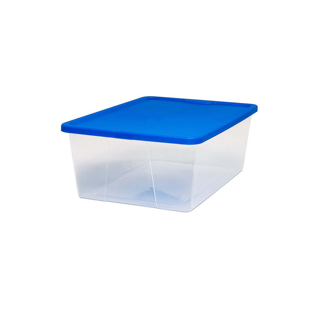 Amazon Com Homz Plastic Storage Tote With Lid 18 Gallon Blue Stackable 4 Pack Home Kitchen
