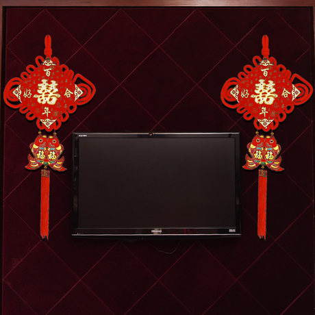 Married Housewarming Celebration Supplies Wedding Room Background Wall Decorative Ornaments For Fish Hi Word Flannel Chinese Knot Ornaments Wholesale