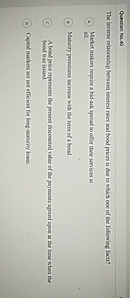 Solved Question No 40 The Inverse Relationship Between In Chegg Com