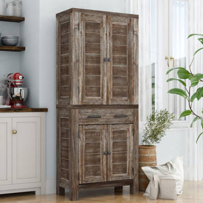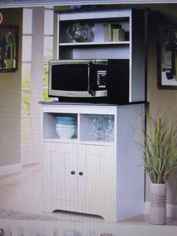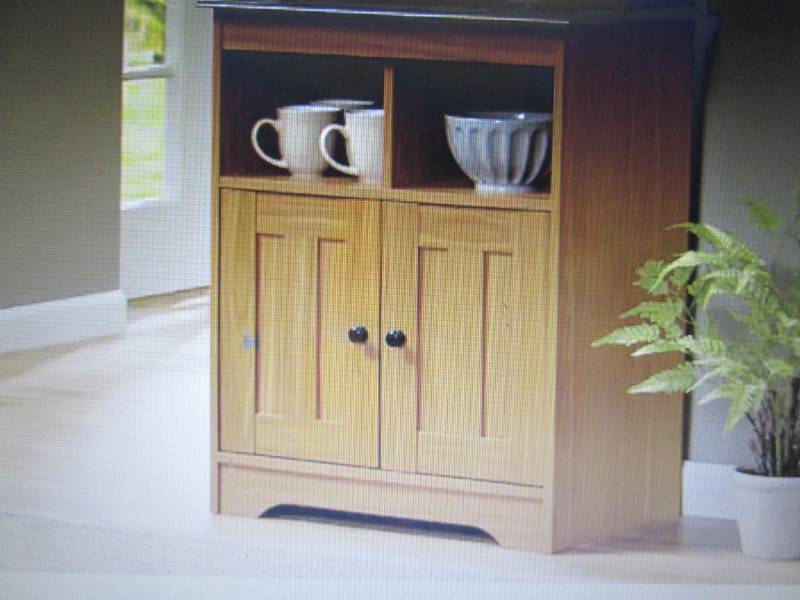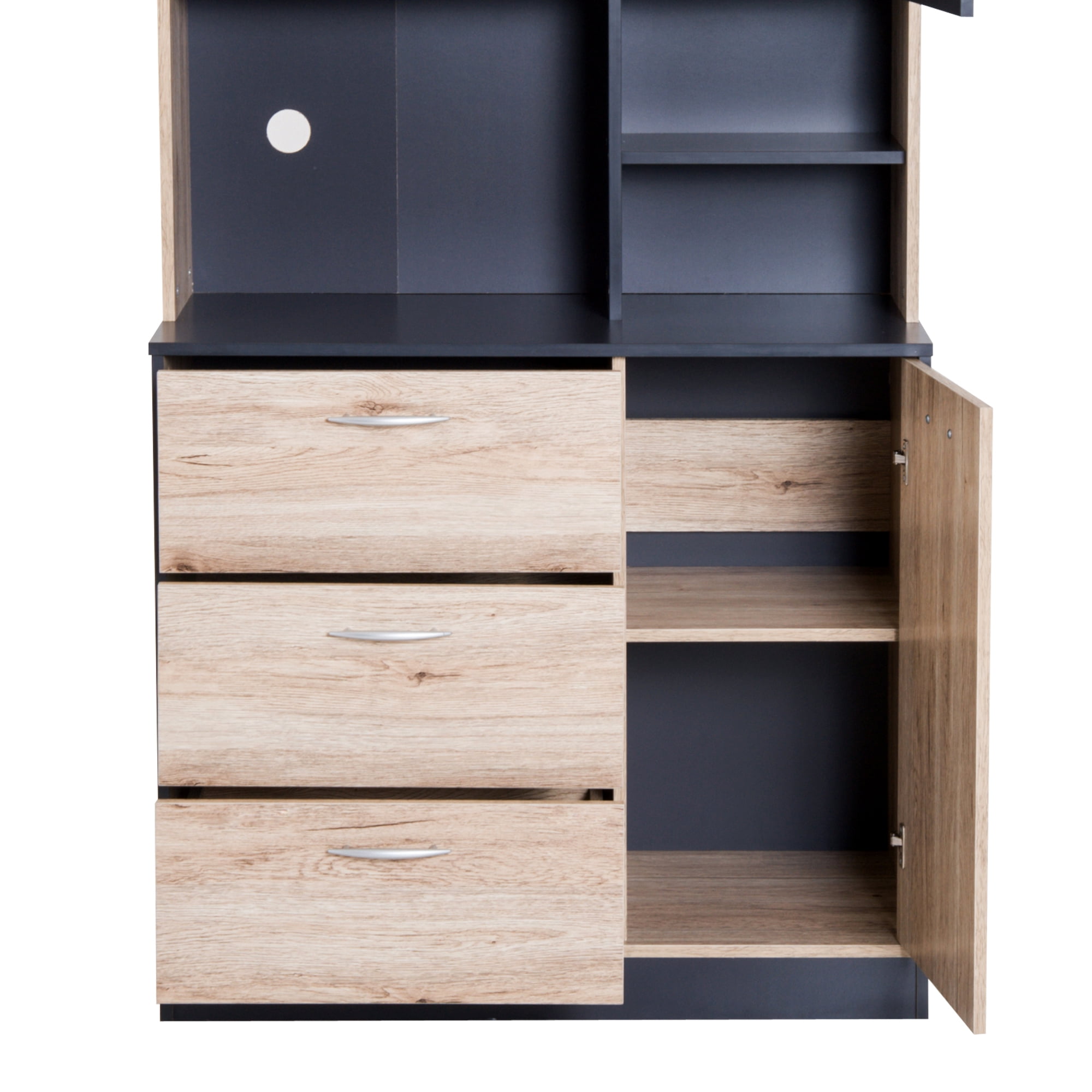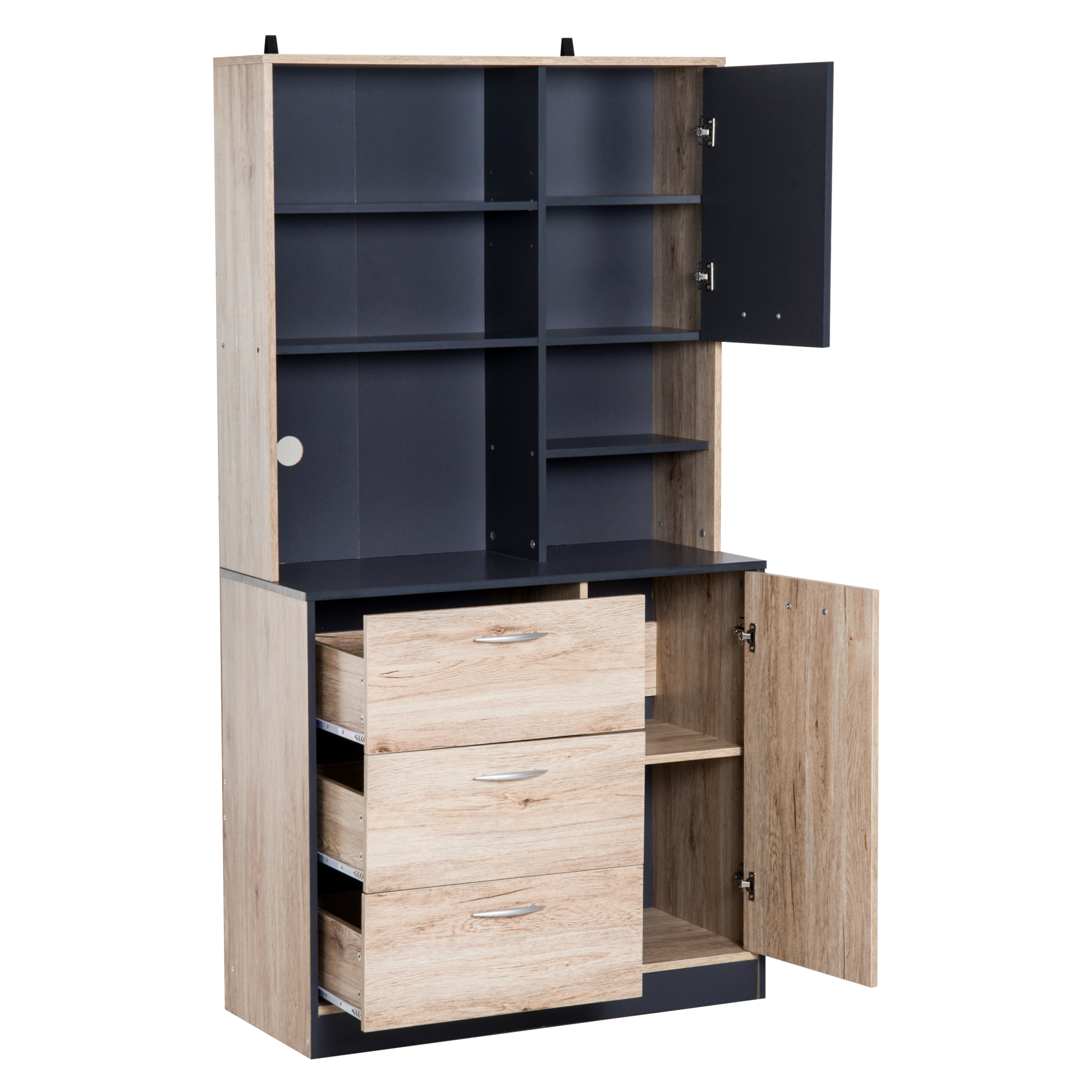 Homcom 67 Modern Freestanding Kitchen Cupboard Cabinet With Microwave Storage Hutch Natural Wood Finish Charcoal Walmart Com Walmart Com