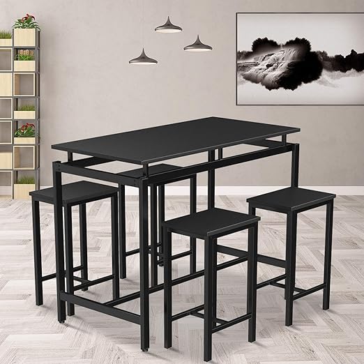 5 Piece Counter Height Dining Set Btmway Wood Kitchen Dining Room Table And Chairs Set Contemporary Pub Bar Table Set With 4 Stools High Top Breakfast Nook Kitchen Bistro Dining Furniture Set A50